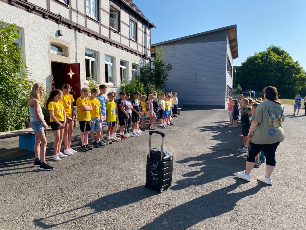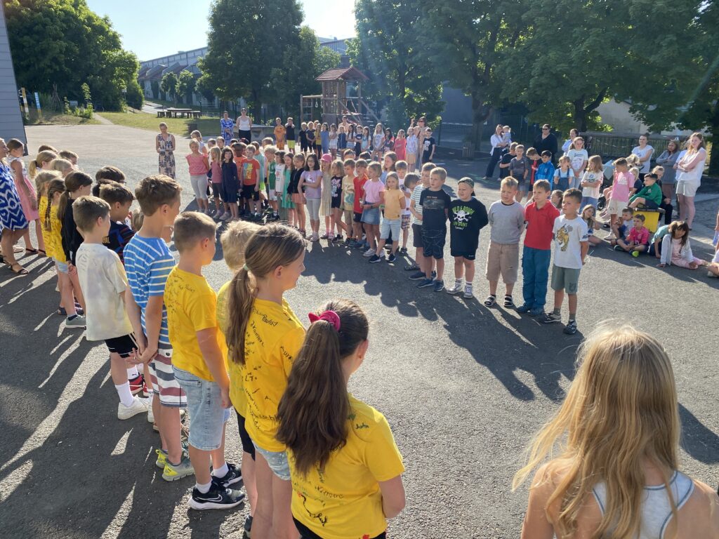 Sehr emotionale Augenblicke erlebten die Viertklässler kurz vor dem Verlassen der Ahornschule, als ihre Patenkinder aus den zweiten Klassen ihnen eine Abschiedslied vorsangen und kleine Geschenke, versehen mit persönlichen Wünschen, überreichten.